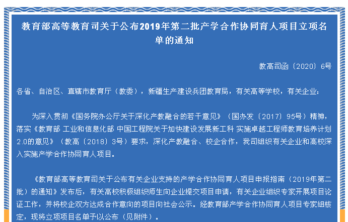近日,教育部公布了《教育部高等教育司关于公布2019年第二批产学合作协同育人项目立项名单的通知》(教高司函〔2020〕6号),我院机器人应用研究院执行院长胡斌博士申报的“智能制造教育中的机器人公共实训平台建设”获批新工科建设类项目立项。
