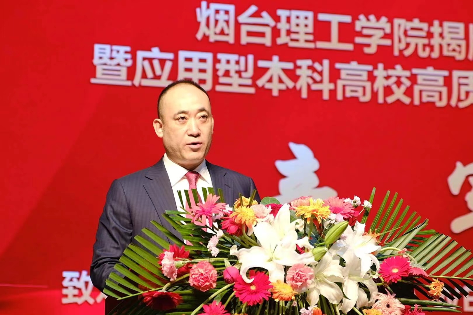烟台理工学院董事长辛军为揭牌仪式发表致辞,校长于光辉作了题为《传承优势 创新发展——努力建设高水平地方性和应用型本科高校》的报告。