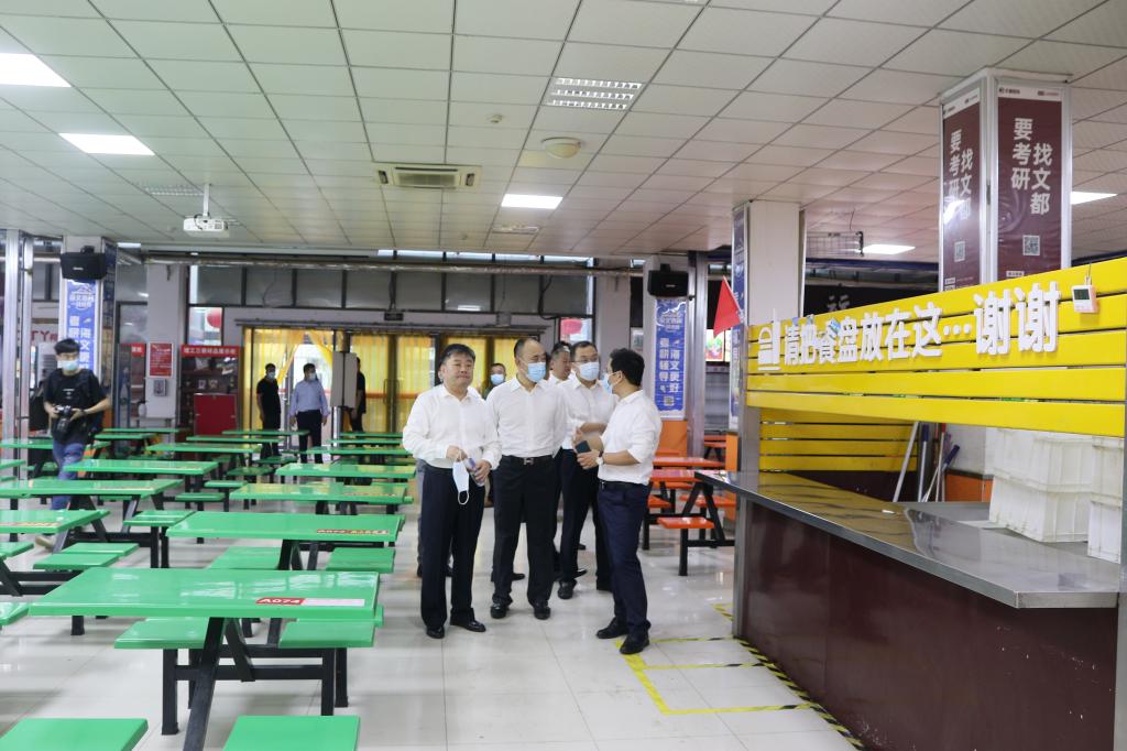 辛军董事长一行在校领导的陪同下先后来到教职工公寓、学生公寓、学校第三食堂、校医务室,详细了解各处的疫情防控、和安全管理等情况,对存在的问题与相关负责人进行了解及沟通,并给予现场指导。