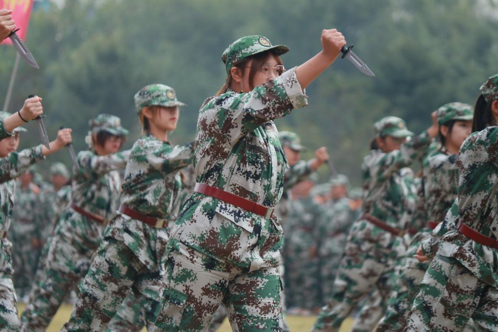 “全体起立,奏唱国歌!”升旗仪式之后,由各学院新生组成的数个方阵昂扬阔步地向主席台走来,他们踏着铿锵的节奏,用气势磅礴的方阵、整齐划一的口号、斗志昂扬的精神接受检阅。匕首操、军体拳和擒拿技术的训练表演更是刚劲有力、整齐划一,展示了烟理工学子的勃勃生机与青春风采。12天的风吹日晒磨练了他们的意志,12天的汗水铸就了他们的威武英姿,他们用健康的肤色、整齐的步伐、昂扬的斗志圆满完成了军训任务。