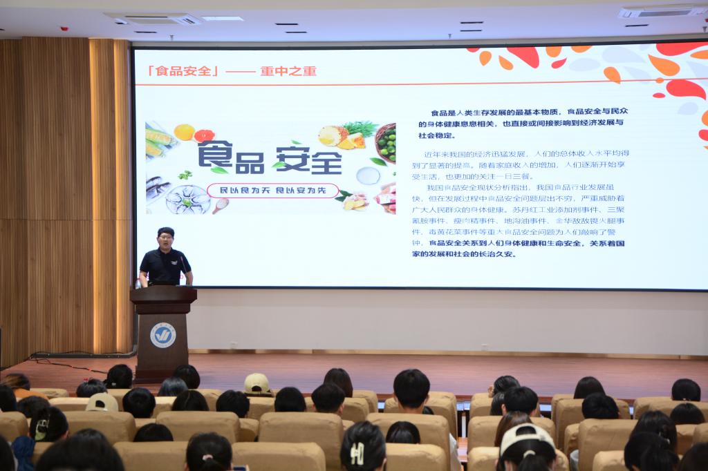 本次欣和企业“认识实习进校园”展示主要包括厨演车品尝和专家讲座两部分。厨演车美食品尝主要有酱油冰淇淋、醯官饮和有机蔬菜沙拉,并提供了多种欣和企业产品的展示。学生错时错峰有序参观展车及产品,进一步激发了同学们的学习兴趣与动力。专家讲座主要包括“欣和的故事”、“我们正在做的事情”以及“我们的事业发展”三个主题,使学生对所学专业建立感性认识,为进一步学习技术基础和专业课程奠定了良好基础。