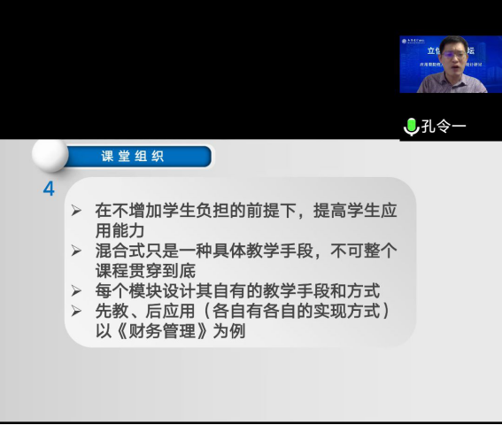 5月27日,立信会计出版社组织的“立信教学论坛”在云端举办,本次研讨会由中国海洋大学李雪教授和我校会计与金融学院孔令一教授主讲,我校会计学院全体任课教师于线上参加论坛。