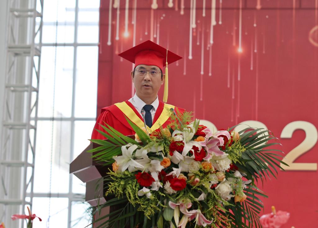 于校长寄语毕业生“把握当下,做好自己”。他表示,只有把握好现在,定其心、应万变,才能走得更远、才能成就最好的自己。他表示,把握当下,做好自己,就是要坚定理想信念,涵养家国情怀;就是要坚持学习,勇于拼搏;就是要秉持“和合”精神,学会沟通合作。
