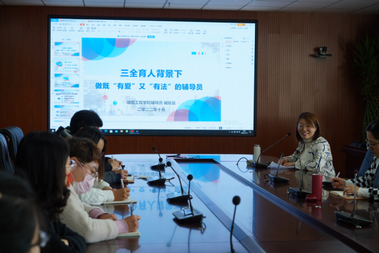 为全面提升我校辅导员的思政素养、业务能力和育人水平,推进我校辅导员专业化、职业化发展,11月4日上午,建筑工程学院党总支副书记臧延云以“三全育人背景下做既“有爱”又“有法”的辅导员”为主题,在全校辅导员培训会上作经验交流。各学院党总支书记、副书记,全体辅导员参加会议。会议由校长助理、学生处处长杜娟主持。