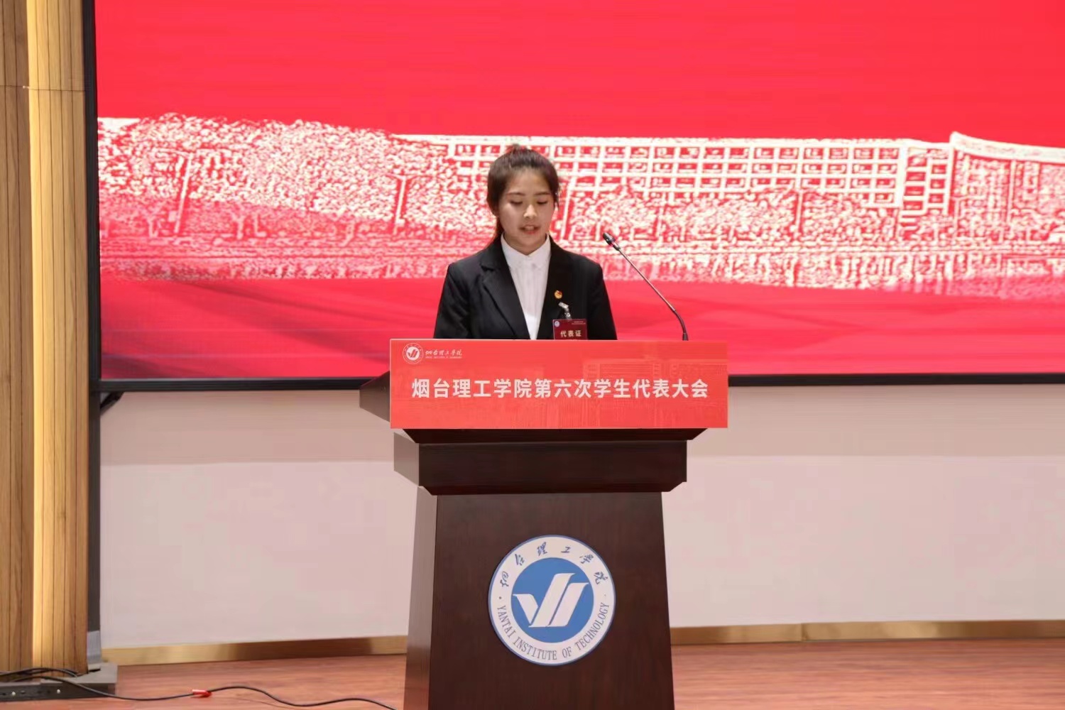 11月13日,烟台理工学院第六次学生代表大会在综合楼六楼报告厅召开。来自全校十个学院的182名学生代表齐聚一堂。烟台理工学院党委委员、校长助理杜娟、校团委书记申海滨、各二级学院党总支、团总支,书记、副书记应邀出席大会。