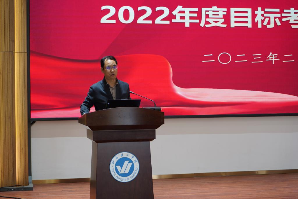 校长于光辉对各单位2022年的目标任务完成情况做了全面而客观的评价,对各单位的工作给予了充分肯定。针对2023年的工作他提出了三点要求:一是要持续抓规范,强基础。持之以恒抓好基础性工作,基层教学组织建设要常态化、规范化,学科专业课程等基础性建设要不断加强,打牢基础是学校长远发展的奠基石;二是要积极谋特色,抓重点,出亮点。各单位要善于系统化总结凝练工作中的亮点,放大优点,走差异化发展的道路;三是要提水平,上层次。要加大高层次人才的引进奖励力度,试行学科专业特区专项补贴,加强师资学科专业一体化建设,统筹优势资源,集中力量办大事,在高水平专业课程和产学研平台等方面实现新突破。四是要树立结果导向、效果导向意识,将OBE理念应用于学生工作,实行全环境育人,争取第二课堂做出实效,培育“重品格、善沟通、能做事、会创新”的应用型人才。最后,他要求每位中层干部要继续做好领头羊,不断精进、各尽其能、各展其才,团结一致,干事创业,高起点高标准做好学校事业发展各项工作。