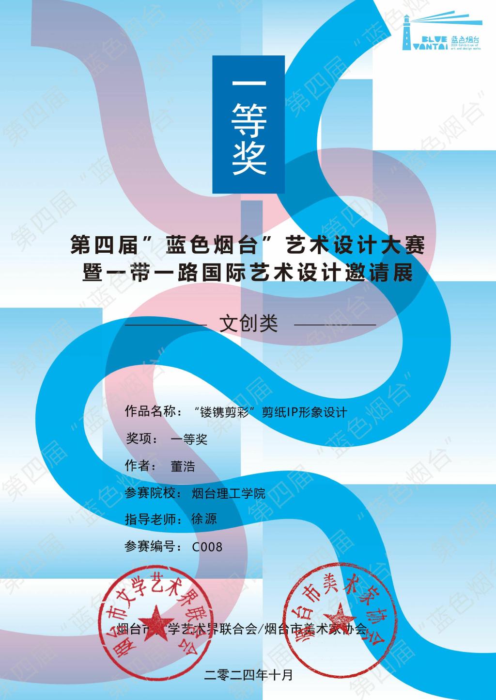 11月2日,第四届“蓝色烟台”艺术设计大赛暨一带一路国际艺术设计邀请展圆满落幕。本次大赛由烟台市文学艺术界联合会主办,烟台市美术家协会、烟台市美术家协会设计艺委会、烟台胶东传播文化有限公司、烟台城市美术馆共同承办,烟台理工学院建筑工程学院积极参与。建筑工程学院参赛人员获多个奖项。