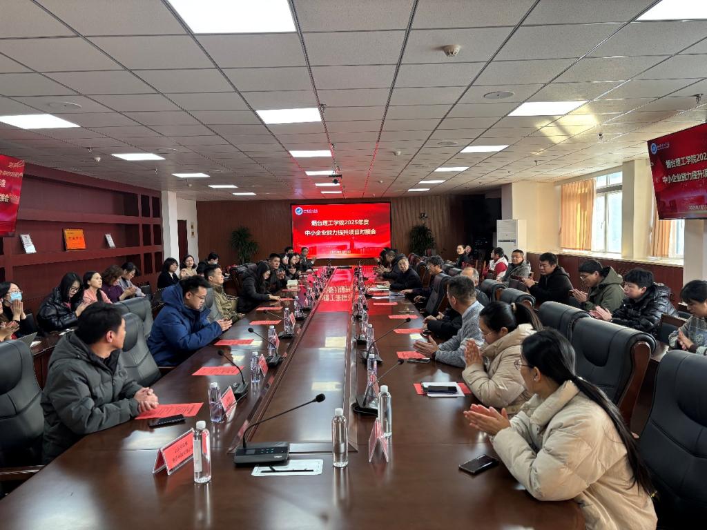 1月10日,烟台理工学院举行了2025年度山东省中小企业能力提升项目对接会,旨在促进校、地、企深融,共同促进地方经济发展。烟台市科技局科长张建设,副校长苏春景、烟台市中小企业代表、各二级学院科研副院长、科研骨干教师及科研处(校地融合办公室)全体成员出席会议。科研处处长徐惠忠主持会议。