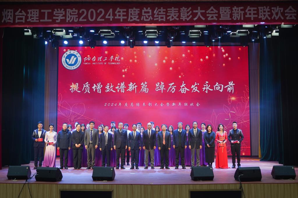 提质增效谱新篇,踔厉奋发永向前。1月14日下午,烟台理工学院2024年度总结表彰大会暨新年联欢会在综合楼一楼多功能厅举行。学校董事长辛军,校长于光辉、党委书记盛国军,董事会秘书长徐荣哲,副校长徐世艾、苏春景、张中华、夏毅,校长助理李洁、杜娟、徐雪峰出席大会,与全体教职员工欢聚一堂,共话喜悦收获,互道美好祝福。