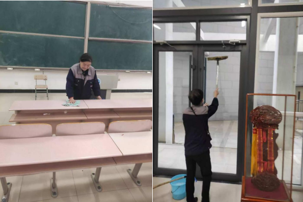 环境提升,打造美丽校园。后勤保洁服务人员将教室、垃圾通道等重点区域进行消杀,确保公共楼宇整洁又干净,为迎接师生返校做好准备。