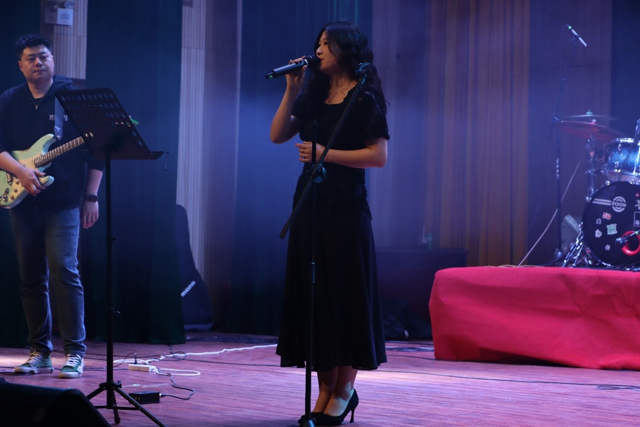 大学生艺术团声乐部演唱歌曲《你从未离去》,让同学们回忆过去,展望未来。乐队九月制噪主唱声音富有穿透力,歌曲《花房姑娘》坚定有力,心跳随着节奏跳动,一首《夜空中最亮的星》,具有穿透力的声音,为同学们指明方向;演出由《鲜花》结束,让我们暂时忘却日常的忧虑,全心投入音乐的怀抱。