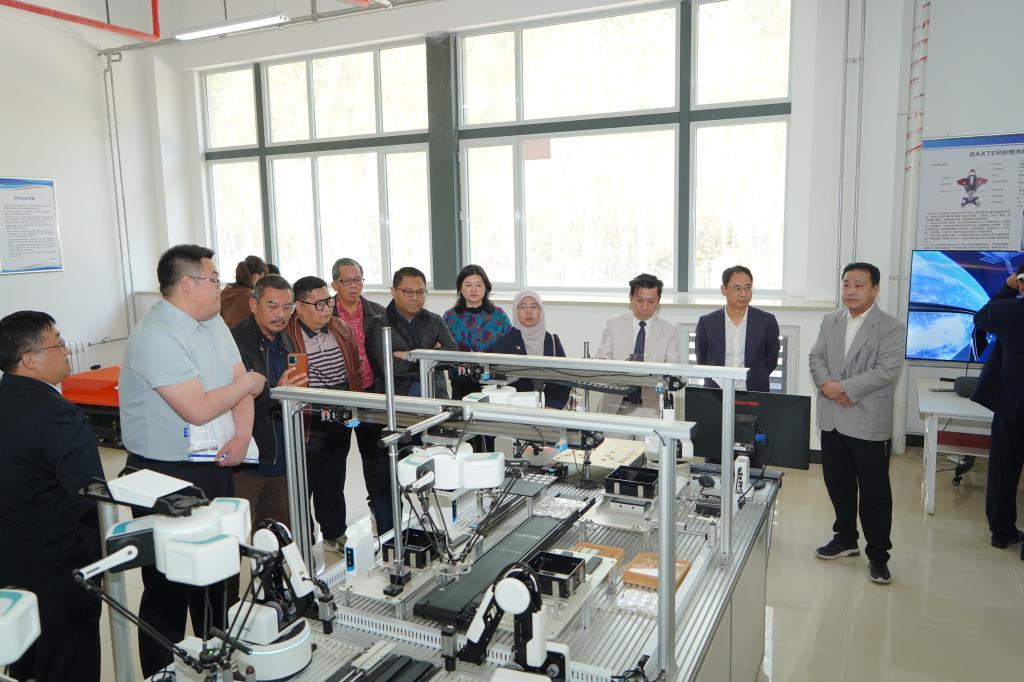会前,来宾一行参观了校史馆,在无人机飞行训练场观摩了旋翼无人机、小型固定翼无人机的飞行操作训练,走进人工智能学院机器人专业实验室,体验了AI智慧体能测试系统和AI非接触心理测评筛查系统。
