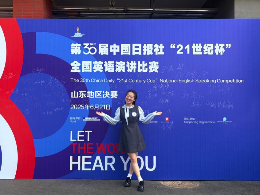 6月21日,第30届中国日报社“21世纪杯”全国英语演讲比赛山东地区决赛圆满落幕,外国语学院高玉同学荣获比赛二等奖,取得我校该项赛事最好成绩,刘同老师荣获优秀指导教师荣誉称号。