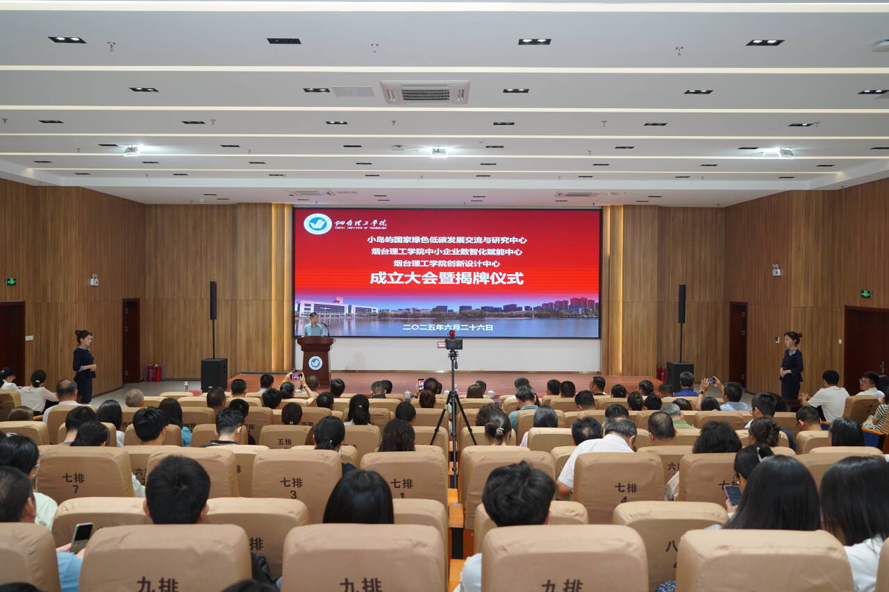 6月26日上午,烟台理工学院在综合楼六楼学术报告厅隆重举行小岛屿国家绿色低碳发展交流与研究中心、烟台理工学院中小企业数智化赋能中心、烟台理工学院创新设计中心成立大会暨揭牌仪式。三个高水平研究平台的同步启动,标志着学校在服务国家重大战略需求、推动地方产业转型升级方面迈出关键步伐。政府相关领导、企业界代表、烟台理工学院在家校领导,各二级学院院长、副院长,专业负责人出席。副校长苏春景主持大会。