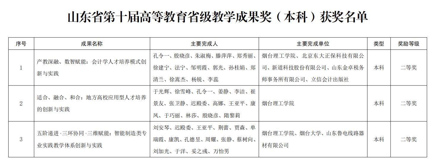 近日,山东省教育厅公布了第十届高等教育教学成果奖获奖名单。我校以第一完成单位荣获二等奖3项,作为参与完成单位获奖5项。