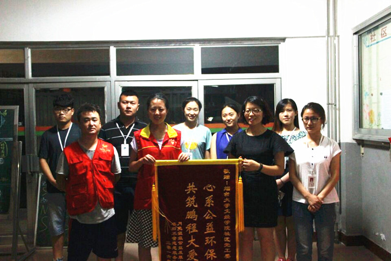 “月亮姐姐公益发展中心”志愿团队负责人向社区党工委赠送了“心系公益环保,共筑鹏程大爱”的锦旗,感谢文经师生为本次慈善义工活动做出的贡献。