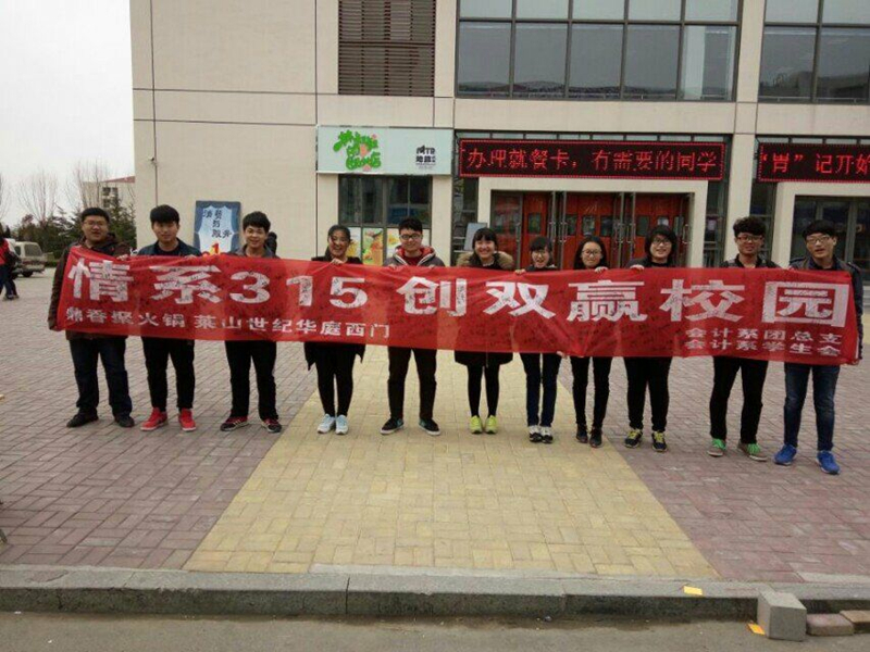 此外,在校内,各系也开展了形式多样的普法维权活动。经济系针对网络诈骗问题,开展了“网购消费进校园”活动,号召学生运用法律武器来维护自身的合法权益;会计系以“情系315,创双赢校园”为主题举办维权签字活动,收集同学们对学校商家的意见及关于维权活动的建议,并进行整理反馈;信息工程系以“倡导诚实守信,共铸消费和谐”为主题,于新餐厅前陈列展板,进行多角度、多载体普法宣传;文法系印制了500张消费维权宣传页,并要求辅导员、班主任利用课余时间到宿舍讲解用电安全和防诈骗的手段和做法,提醒同学们维护好自身安全与合法权益;机电工程系在第三餐厅门口发起了“食堂安全我来议”的征集活动;管理系联合院学生会在学院餐厅共同举办了以“新消费,新维权”为主题的活动。