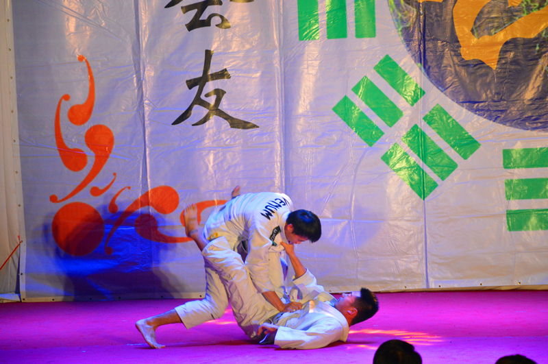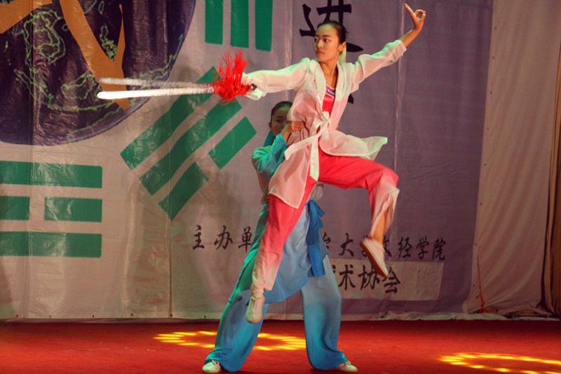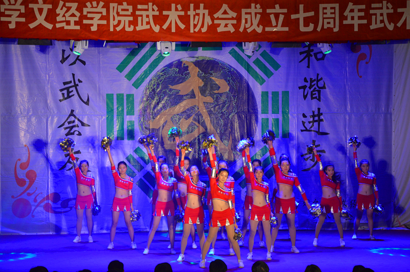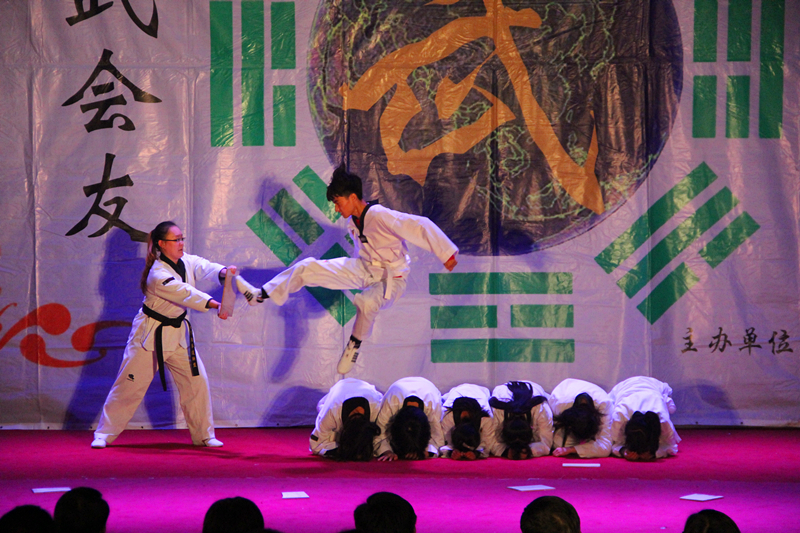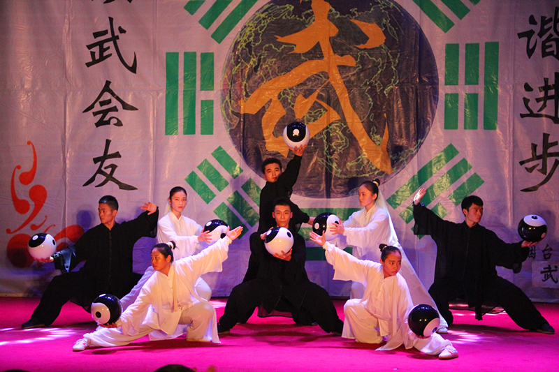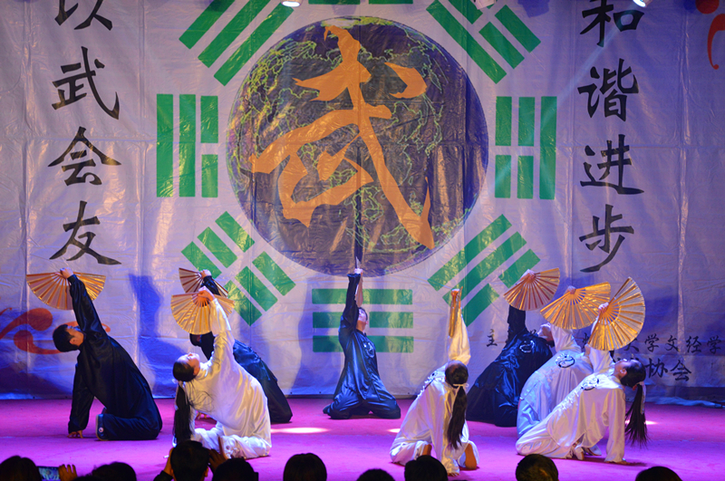 伴随着朗朗的读书声,行云流水的太极拳缓缓起势,《武韵》宏伟开场,国学与太极的交相辉映,让同学们感受到了传统文化的博大精深。王开文主任带来的螳螂拳,攻守兼备,纵横捭阖。太极部传帮带节目《梁祝》优雅潇洒,持剑而舞,《墨武》文武笔墨,书生侠气,魅力不减。双节棍部的《棍舞龙魂》灵巧多变,神采飞扬,刚毅勇猛中不失可爱俏皮。《太极球》黑白相间,如行云流水,绵绵不绝。巴西柔术部的表演技巧多元、精彩实用。散打部的《墨龙》以情景剧的形式向观众们展示散打的现实用途。太极部的保留节目《乾坤》开合之间,气贯长虹。跆拳道部的《跆风》技艺精湛,女队员的表现更是巾帼不让须眉。健美操部姑娘们迈着轻快活泼的舞步,带来欢乐的气氛感染着现场观众。