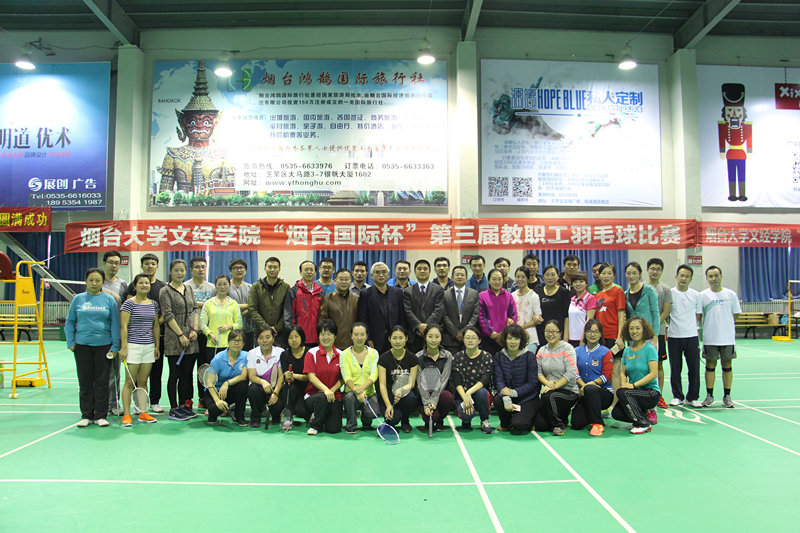 为丰富教职工业余生活,加强教职工之间的交流,11月20日,我院在烟台国际波力球馆举办“烟台国际杯”第三届教职工羽毛球比赛。学院副院长王来武,羽毛球协会会长韩少明,赞助商烟台国际经济技术合作有限公司总裁宋安纪、副总裁王卫国出席活动。
