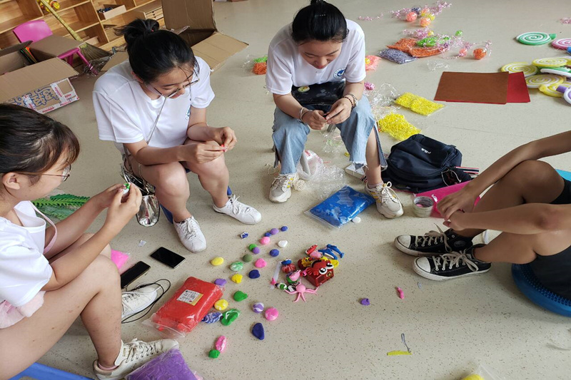 在接下来的几天时间里,星火暖源团队队员帮助每一位老师完成他们分配所需装饰的教室。剪纸、贴画、裁字等等,每位队员各司其职,秩序井然。在装饰教室的过程中,星火暖源团队队员偶遇到两名已经从心生元毕业的学生,并与他们一同制作装饰品,谈论中得知,他们两岁被送进心生元儿童康复中心,从一开始的完全听不到他人讲话并且自己也不会讲话直至现在为止装上人工耳蜗可以正常的与他人进行交流。在这几年的时间里,心生元的老师们付出了巨大的努力。