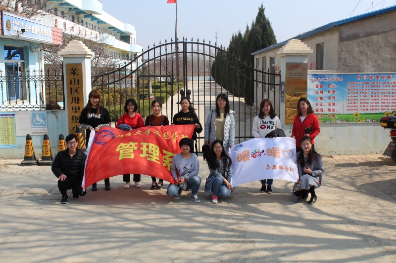 为激发大学生的社会责任感,丰富学生课外活动,创新志愿支教服务模式。管理系于3月15日下午在莱山区卅里堡小学开展大学生志愿支教活动。活动由辅导员丛维、柳嘉靖老师带队,“暖阳暖心”志愿服务队全体成员积极参与。