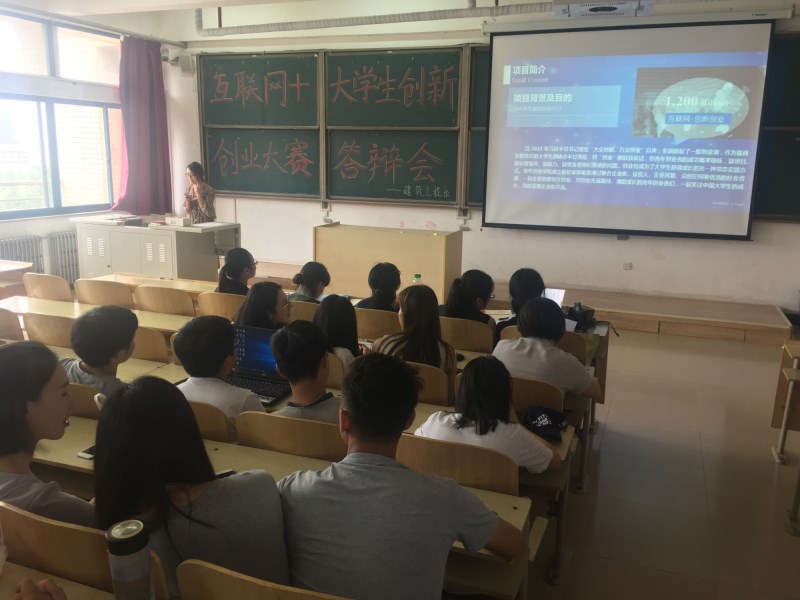会议伊始,王晓黎老师介绍了本次比赛的目的和答辩注意事项,随后建筑工程系13个参赛组依次介绍了自己的创意内容。各参赛组的展示内容主要围绕项目概况、主要内容、市场及数据的预测、如何满足目标市场需求、项目的创新点以及项目的核心资源等方面进行。每组答辩结束后评委老师都会有针对性多地进行提问,以便更加全面地了解各组的创意。精美细致的PPT,流畅的答辩过程,处处体现了参赛选手对本次“互联网+”创新创业大赛的重视。