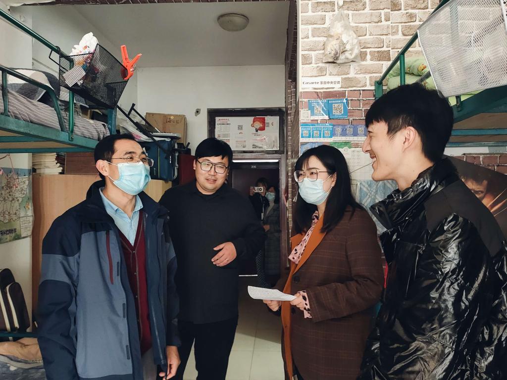 走访毕业生宿舍中,高照龙书记着重强调了宿舍安全和卫生工作,不断耐心询问暖气供应、宿舍保暖、用电用水情况,细致了解毕业生的生活近况和就业现状,与毕业生进行面对面、心贴心的交流,全方位、多层次了解毕业生学习、就业、生活等方面问题。期间,高照龙书记多次提醒毕业生要提高警惕,提防电信诈骗,并强调准备就业的同学们要把握就业机会,鼓励同学们在日常生活中要脚踏实地、不怕吃苦、努力工作,尽快熟悉社会环境,在实践中增长才干和吸取经验。最后,高照龙书记与宿管老师交流学生基本生活状况,以确保每一名学生都能在宿舍住的安心、暖心、舒心。