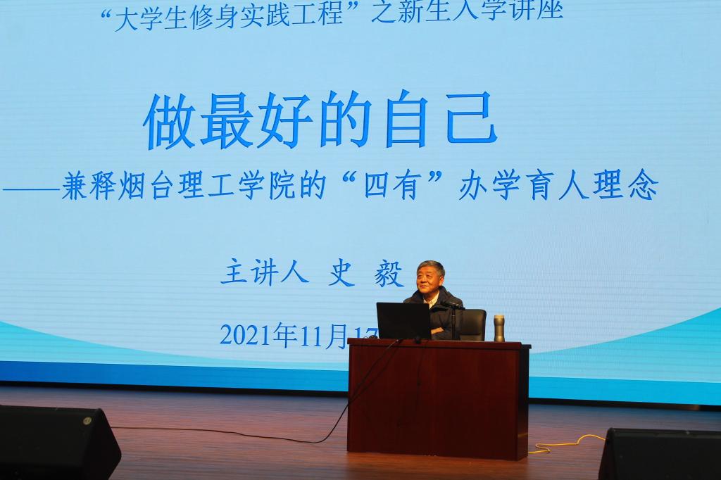 为帮助新生顺利实现角色转变,树立正确的世界观、人生观和价值观,做好大学阶段规划,努力提升自身核心竞争力。11月17日,烟台理工学院于综合楼多功能报告厅开展2021级新生入学教育“做最好的自己”主题讲座。本次活动由烟台理工学院史毅老师主讲,经济管理学院21级辅导员仪梦瑶主持,我院2021级新生积极参加。