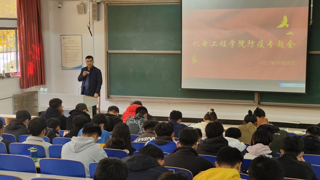 10月29日中午,机电工程学院于一教102举办防疫专题会。机电工程学院党总支书记邓之增,团总支书记包微,辅导员丛维、都青及各班级代表参加此次会议。
