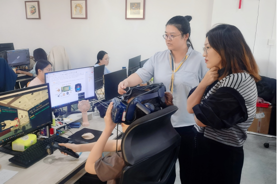 翼动智能负责人带领教师团队参观了公司的多媒体交互展示研发部及影视传媒研发部,详细介绍了近年来的发展情况及公司主营业务,包括:学科基础平台建设、慕课等课程资源建设、虚拟仿真特色专业建设、多媒体智能化场地建设、平面及3D设计服务等,并邀请教师进行现场体验,以及对人才引进及需求也进行了详细介绍。