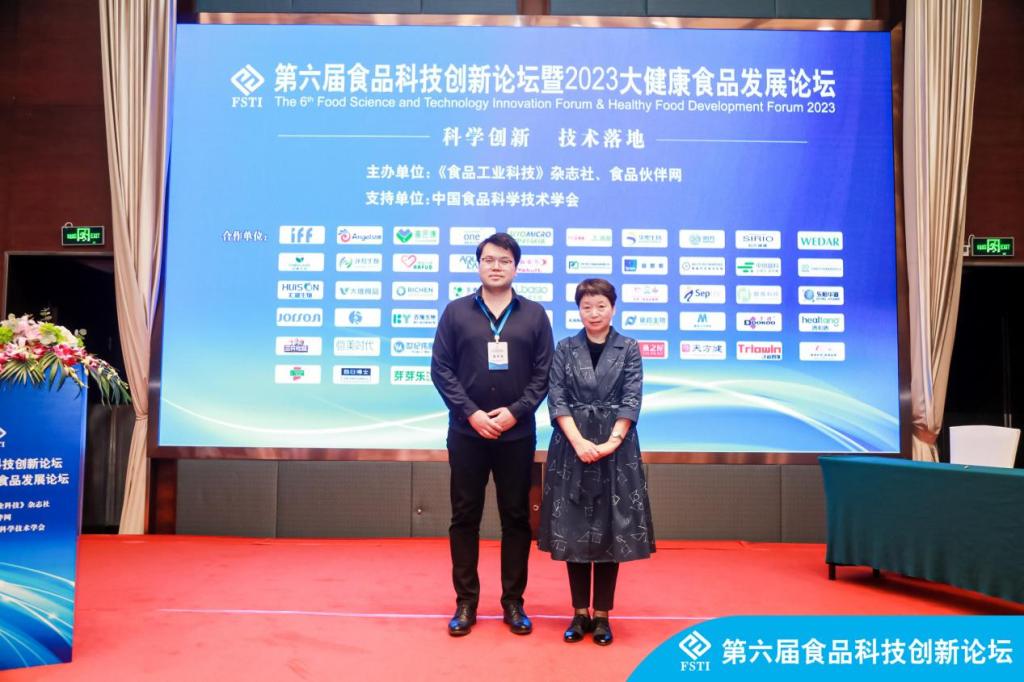 我校食品与生物工程学院教师团队王晓洁教授与孙盛千副教授作为嘉宾参加此次论坛,王晓洁教授作为特医食品产业研究院首席专家为大会做了《特医食品研发典型案例分享》的精彩专题报告,她以如何解决特医研发中出现的合理不合法的案例为切入点,从研发角度分享了如何完善特医及食品法规来规避以及解决可能出现的问题;以及通过审批下来的碳水组件-术前糖水配方分析为例讲解如何研发改善病人营养需求的特医食品。孙盛千副教授参与功能食品、特殊食品以及未来食品分论坛,就植物基蛋白功能食品的研究、特医食品发展以及天然抑菌剂的应用与专家教授展开研讨。