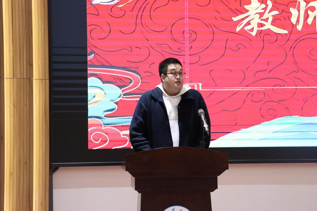 活动开始,教师代表徐家南上台讲话。他向同学们分享自己十年来的学习感悟,告诉同学们在外语专业想要有所成就,坚持、涉猎、勇敢应是学习过程中的主旋律。在成长成才的道路上,他鼓励外院学子不断尝试,积极试错,多方面涉猎,积极拥抱这个不断变化的世界。