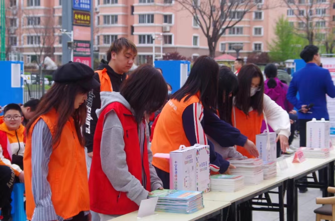 在社区工作人员的带领下,志愿者们协助摆放书籍、礼盒等物品,提醒到场人员扫码签到。志愿者们分散到社区各个区域,积极向家长们介绍公益活动的目的和意义,用朴实的语言传递阅读的重要性,引领更多家长和孩子们加入到阅读的行列中来。