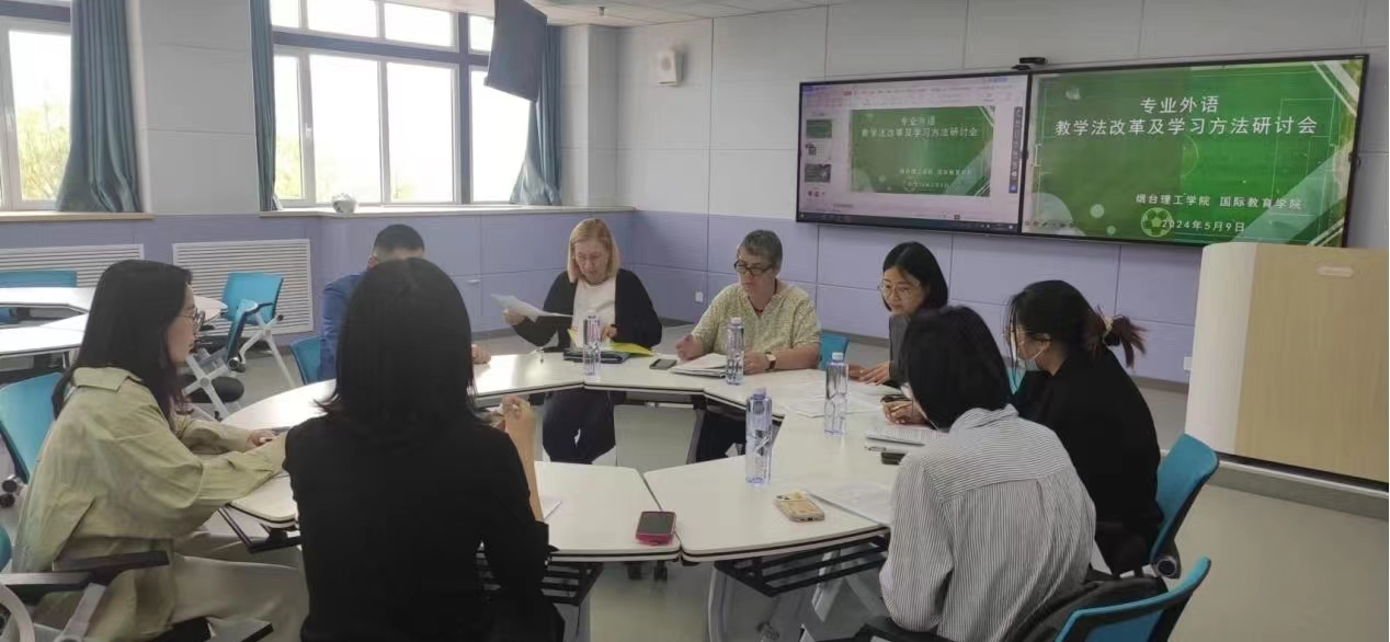 5月9日下午,国际教育学院在科研处的支持下,于综合楼智慧教室举行了一场意义深远的教学法改革与学习方法研讨会。此次会议邀请德国梅泽堡应用技术大学语言学教授Meister和Telepneva作为主讲嘉宾,与国际教育学院全体德语教师、教学管理及学工人员以及即将赴德国深造的同学们共同探讨德语教学的最新理念与方法。