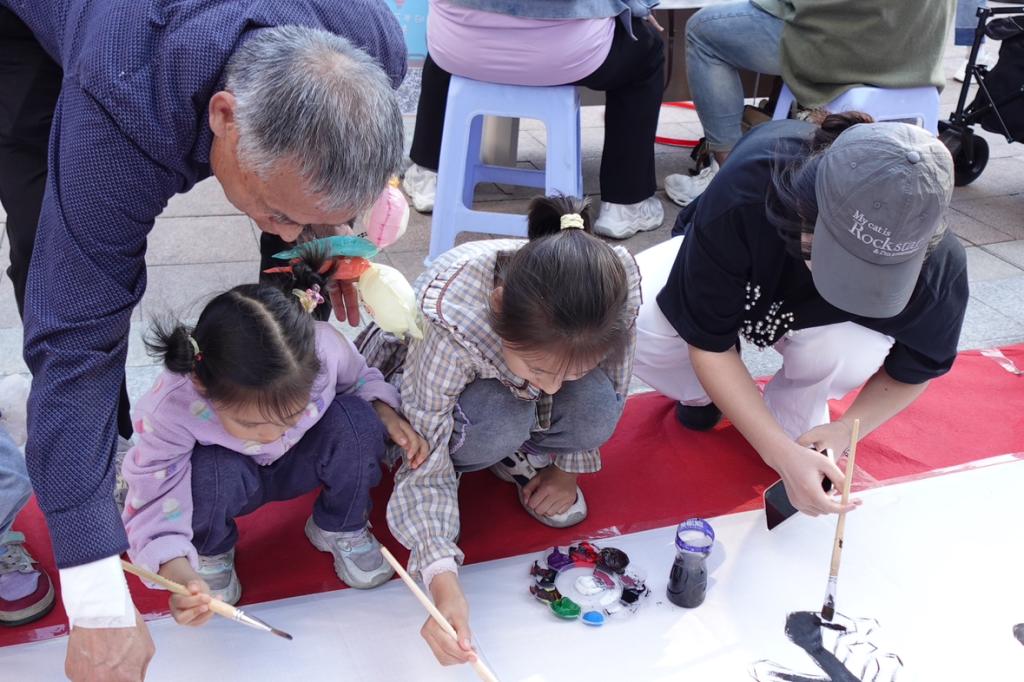 活动伊始,志愿者们纷纷在各自的摊位上展开画布,以“大手牵小手,共绘欢乐时光”为主题,绘制出了一幅幅充满创意与活力的画作。这些五彩斑斓的作品很快便吸引了众多孩子的目光,他们纷纷加入绘画的行列。孩子们或蹲、或跪、或趴,全神贯注地投入到创作中,时间仿佛在这一刻静止,只留下了笔尖在纸上跳动的声音。孩子们以纯真的童心和稚嫩的小手,用五彩的颜料在百米画卷上尽情挥洒,将心中的多彩世界展现得淋漓尽致。他们通力合作,将局部画作汇聚成一幅幅壮观的画卷,将原本单调的白色画布变为了五彩斑斓的艺术品。