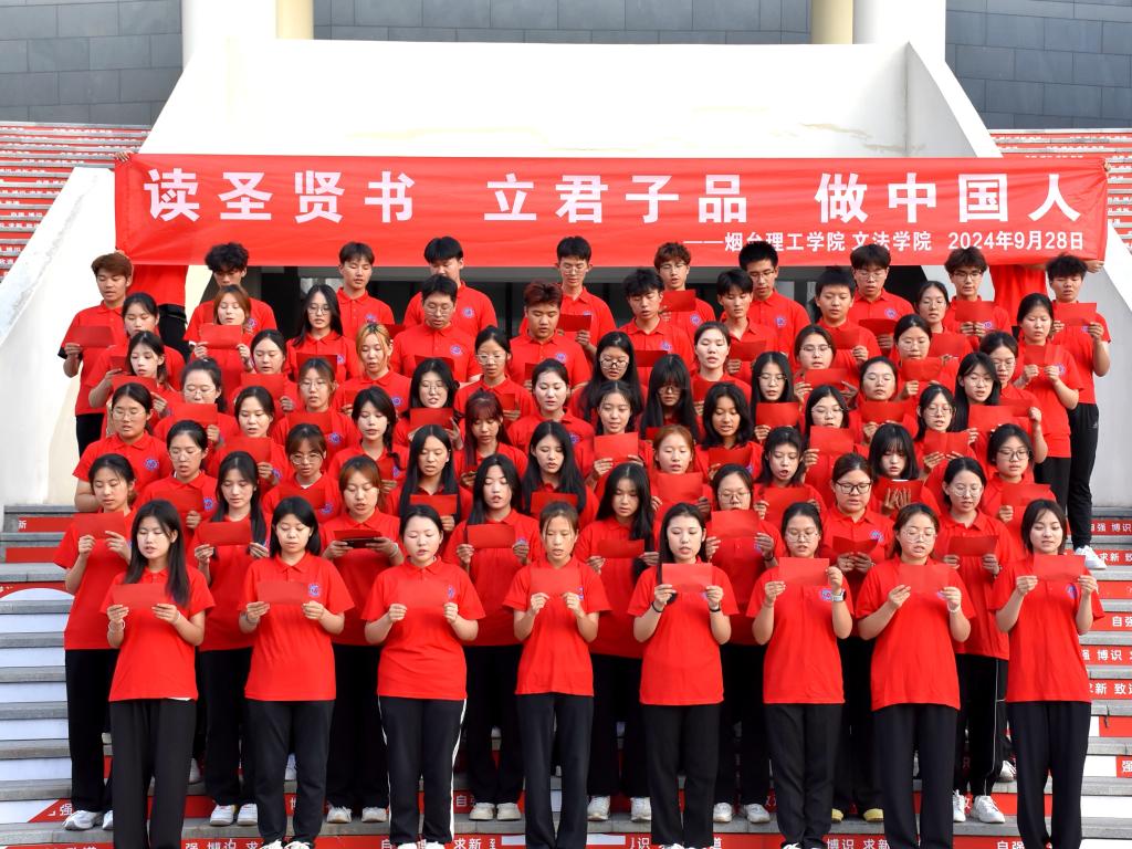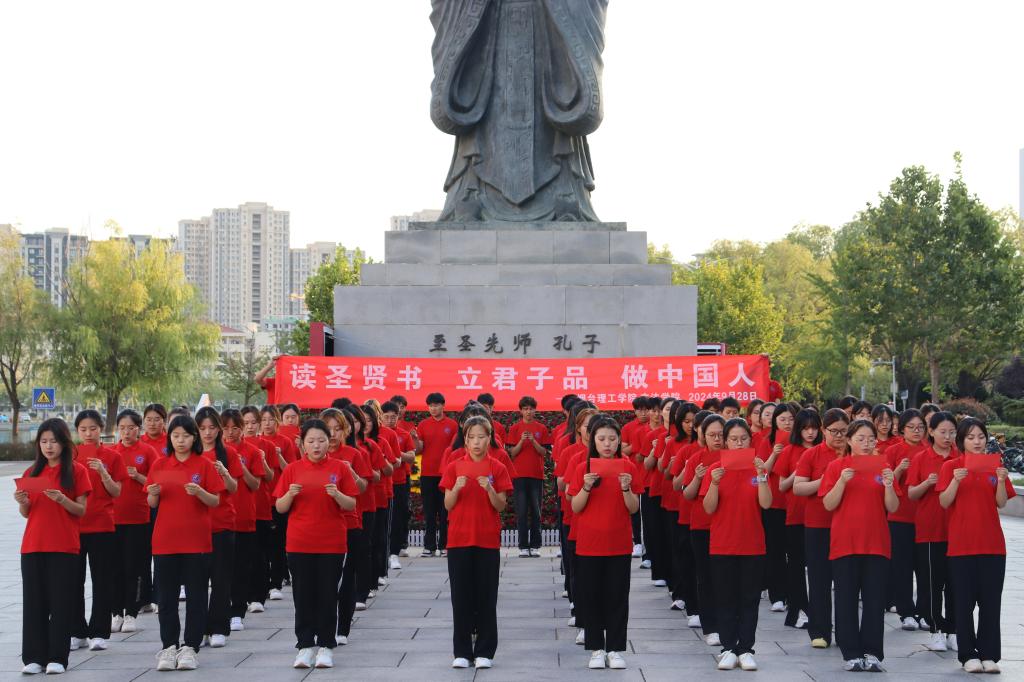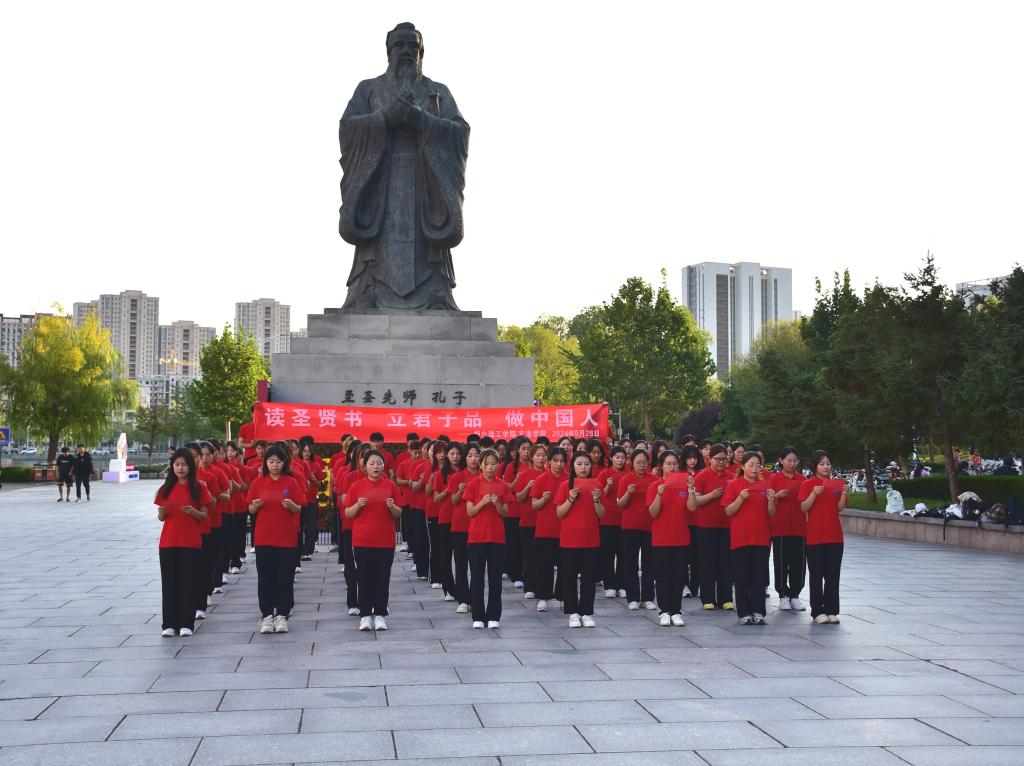 9月28日上午,文法学院参与了由烟台市委宣传部指导,烟台市文化和旅游局、烟台市教育局、烟台市社科联主办,鲁东大学、烟台图书馆、烟台华夏文化促进会承办的“相约论语文化中国”一一孔子诞辰日,人人读论语活动。文法学院师生们,在孔子像前学习《论语》、诵读《论语》、感悟《论语》,接受优秀传统文化熏陶,共润经典智慧。