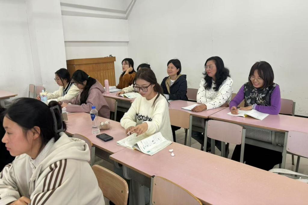 授课过程中,许月娟以精心准备的教学课件作为辅助工具,通过丰富多彩的教学活动和生动直观的语言,让课堂变得生动有趣。她注重在讲授中穿插课堂互动,在提高课堂活跃度的同时提升同学们的专注力。授课结束后,许老师与前来观摩的教师进行教学方法的总结讨论,营造出浓厚的教研氛围。