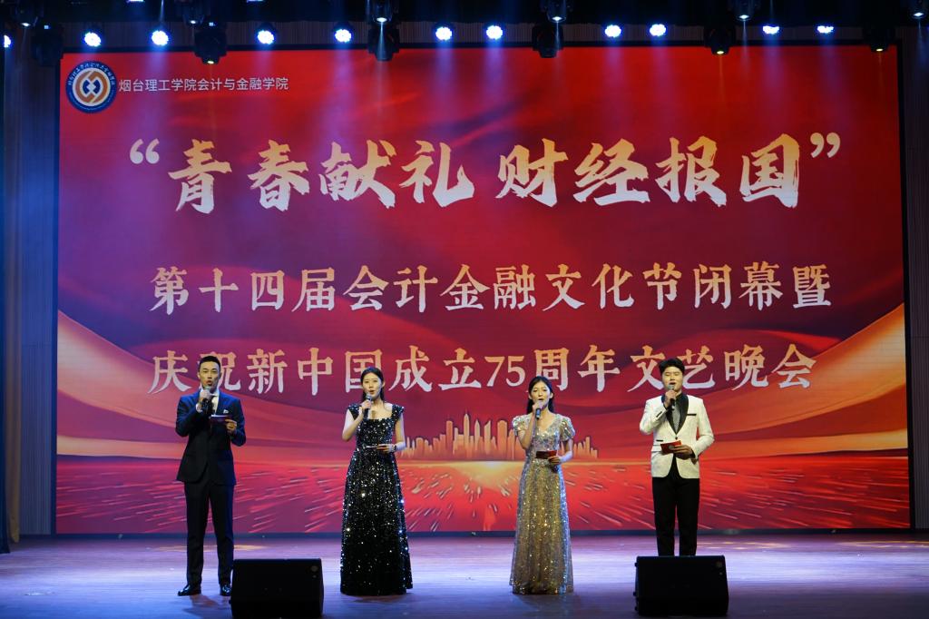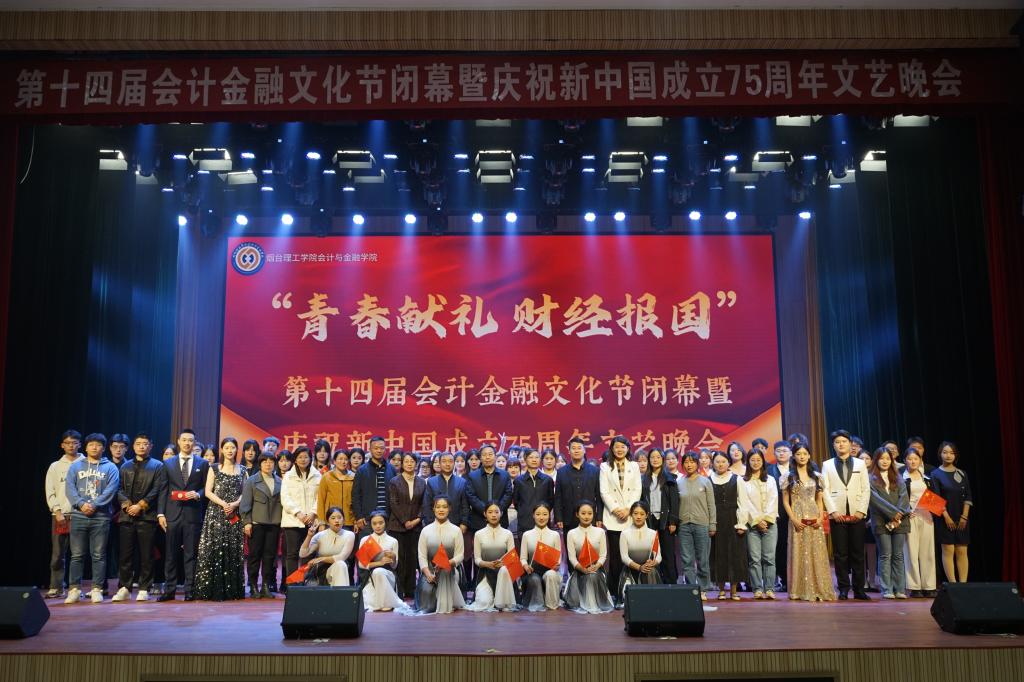 10月28日晚,会计与金融学院第十四届会计金融文化节闭幕暨庆祝新中国成立75周年文艺晚会在综合楼一楼报告厅举行。