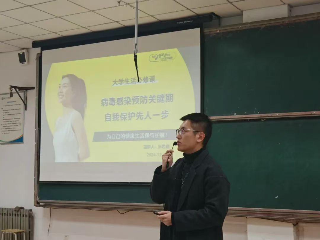 王志宏对本次‘企业家进课堂’活动进行了简单阐述,强调此次讲座对于增强大学生健康教育的重要意义,热烈欢迎出席讲座的专家与企业人员。张岩鑫从HPV、流感病毒、乙肝病毒等三种病毒入手,带领同学们认识病毒的基本知识,详细介绍了三种病毒的定义、传播途径、危害性等方面的内容。他指出,大学生群体人数众多、居住密集且流动性大,病毒传播易呈现速度快、范围广、危害大的态势。他呼吁同学们务必高度重视病毒预防,保持良好的个人卫生习惯,降低感染风险,为自己和他人的健康筑牢防线。