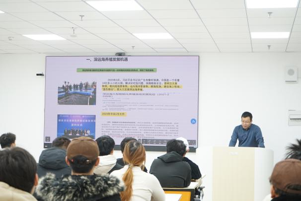 刘振明工程师以其丰富的项目技术管理经验,为学生们深入剖析了深海养殖装备的发展机遇与现状,并详细介绍了养殖装备的核心问题及突破路径。他的讲解不仅让学生们对深远海养殖装备有了更深入的认识,还激发了他们对这一领域未来发展的思考。