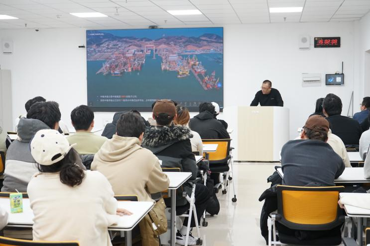 刘陆昱工程师则从中集的发展历程及中集蓝公司养殖装备的发展出发,结合具体工程项目,为学生们详细讲解了养殖装备的设计流程、所用到的结构专业知识等内容。两位工程师的讲解生动有趣,既有理论深度,又贴近实际应用,为学生们提供了一个将理论知识与工程实践相结合的学习平台。