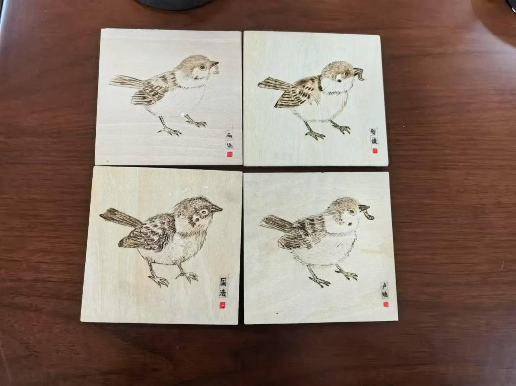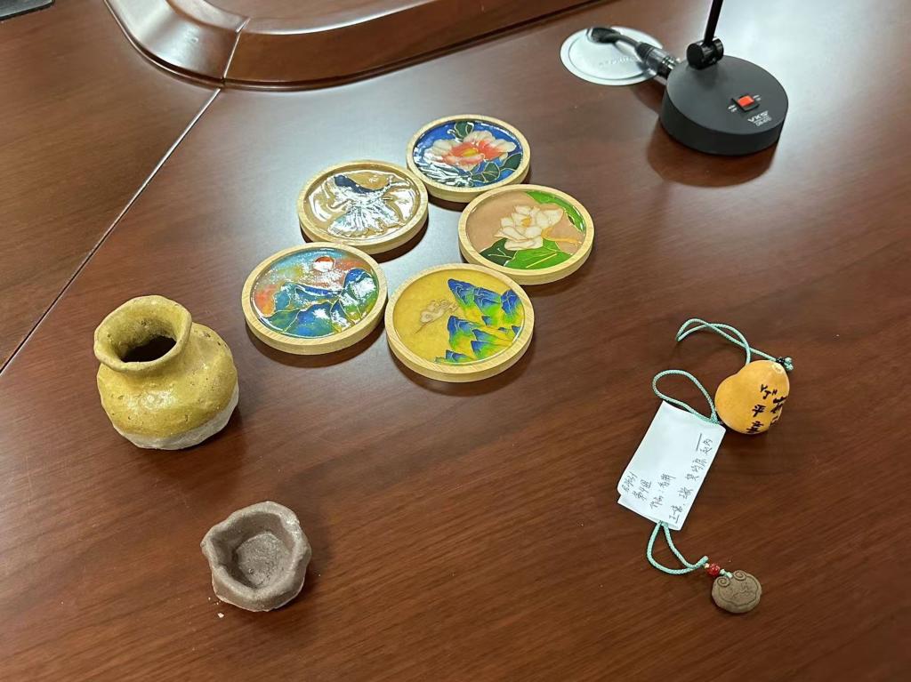 “非遗文化进校园”学生实践成果丰富多彩,其中包括:烟台剪纸、葫芦烙画、扎染、漆扇、拓印、掐丝珐琅、烟台绒绣、葫芦雕刻等。学生们的作品将传统文化元素与现代设计巧妙融合,展示了非遗文化的独特魅力和学生们的创意才华。这些作品不仅体现了学生们对传统文化的热爱,更展示了他们在创作过程中的思考和探索。