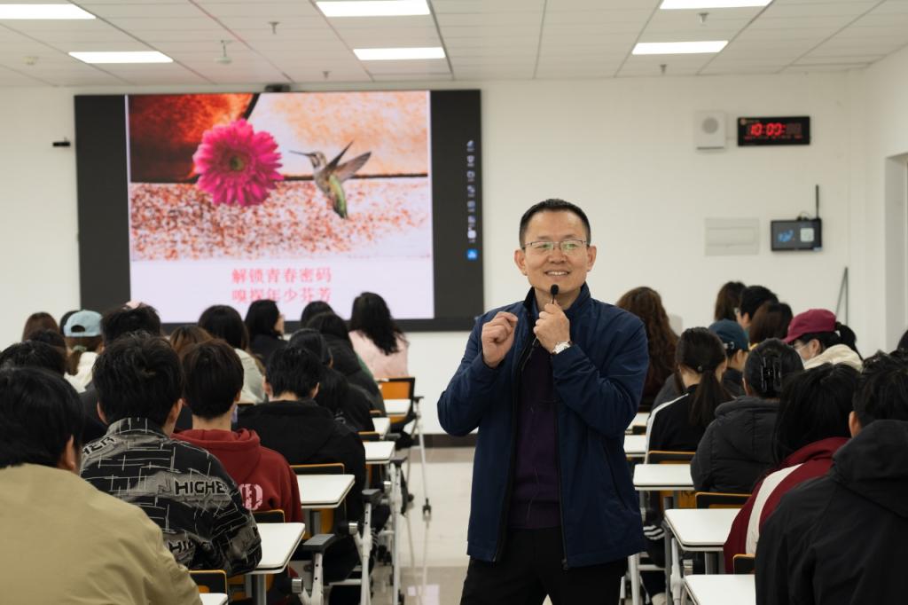 马学江创新性地采用“风雨模拟”互动教学法,组织学生运用击掌、跺脚等肢体动作模拟自然气象变化,以沉浸式体验迅速破冰,并结合临床心理学研究成果,通过典型案例深度剖析压力转化的内在机制,系统阐释了“认知重构理论”在情绪管理中的实践应用,指引同学们从认知重构、情绪管理、压力转化三个方面进行思考,有效解决心理困难和疑惑。互动环节中,同学们积极提问,马学江运用专业量表工具和认知行为疗法技术,为同学们提供了个性化心理调适方案。
