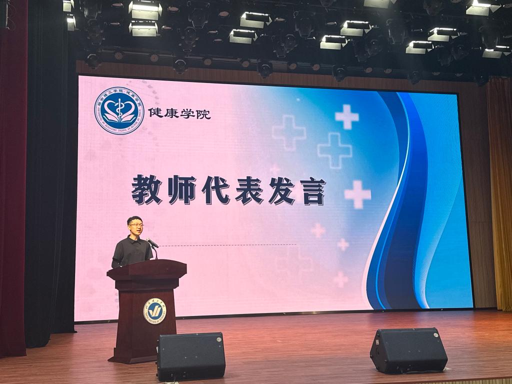 老生代表赵博歆结合在校期间的学习、生活与工作经历,分享了成长心得,展现出健康学院学子积极向上、勇于担当的精神面貌。新生代表李婧晏则抒发了初入大学校园的激动与喜悦,表达了对未来大学生活的美好憧憬,以及刻苦钻研、追逐梦想的坚定决心。