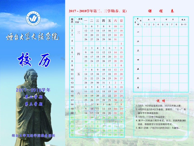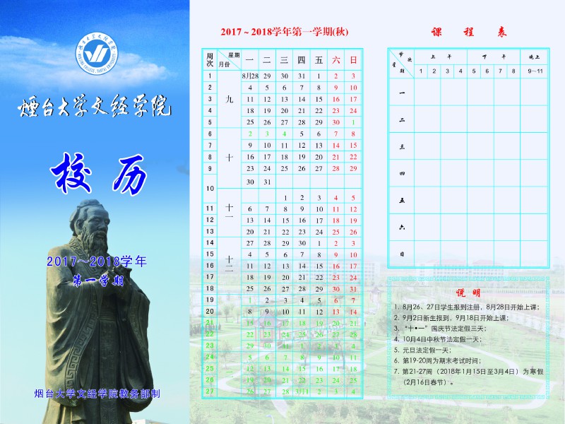 烟台大学文经学院2017-2018学年校历